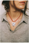 Rooted in the original Medallion design, this pendant is crafted in high polish silver and reimagined as a bold yet refined double form. Two movable silver spheres bring subtle motion and contrast to its geometric silhouette, creating a sculptural and contemporary statement piece. The pendant comes with a long silver chain and a black silk scarf for versatile styling.