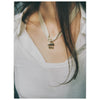 Small pendant in 14-carat yellow gold with a refined, sculptural profile. The clean geometric form introduces a subtle sense of movement. Designed to be worn with the accompanying black silk scarf.