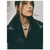 Medallion pendant in high-polish sterling silver with a clean, geometric profile and sculptural edge. A refined, versatile piece designed to be worn with the silver chain or the black silk scarf.